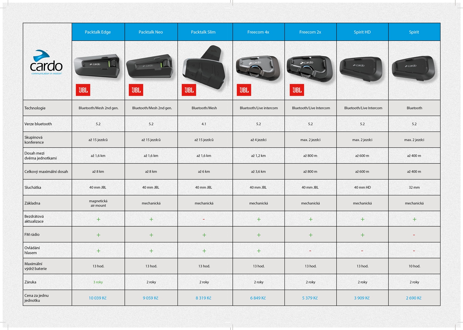 PŘEHLEDNÁ TABULKA, KTERÁ PORADÍ S VÝBĚREM CARDO HANDS FREE - klikni na obrázek pro zvětšení.