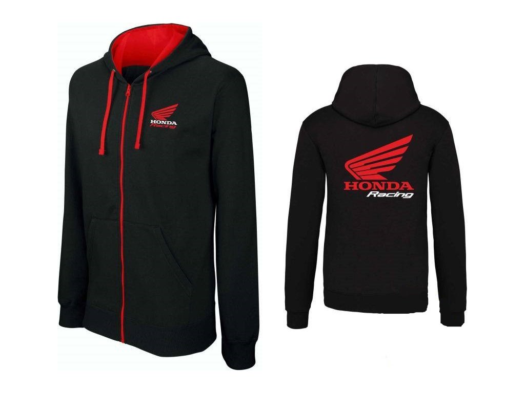 Pánská mikina na zip s kapucí motiv HONDA černo červená