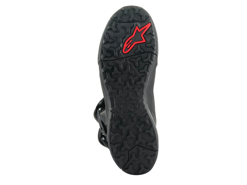 - Trvanlivá, lehčená a pružná podrážka s hrubším vzorkem vhodným do terénu a podobnými konstručními prvky z modelu bot CR-X disponuje pružným můstkem TPF (Transversal Protection Frame) a vnitřním absorpčním panelem v oblasti paty. Zajistí oporu a ochranu nohy při jízdě v kombinaci s pružností a dopadem na špičce 10 mm, díky kterým je bota komfortní při chůzi.