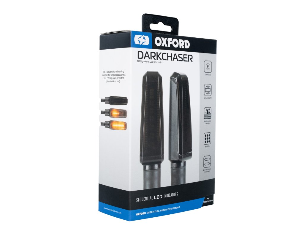 Sekvenční LED blinkry OXFORD DARKCHASER představují potenciální zlepšení při nahrazení konvenčních blinkrů. Blinkry DARKCHASER disponují sekvenčním režimem s dynamickou indikací svícení blinkrů.