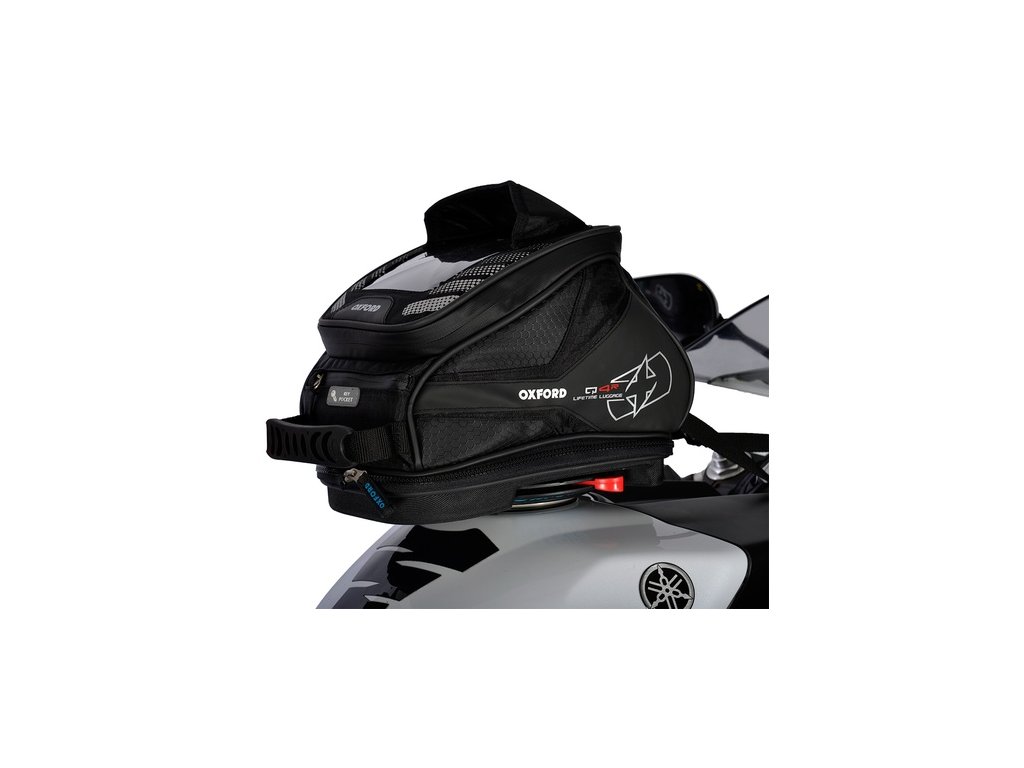 tankbag na motocykl Q4R QR, OXFORD (černý, s rychloupínacím systémem na víčka nádrže, objem 4 l)